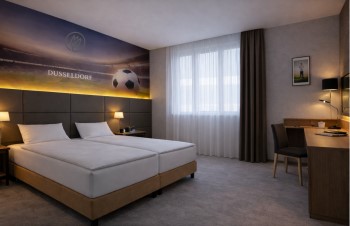 The Event & Fair Hotel Tulip Inn Düsseldorf Arena has a lot to offer. It is located directly opposite the Düsseldorf Trade Fair and is integrated into the Merkur Spiel Arena. Our 280 modern rooms are all air-conditioned and equipped with 2 beds.
